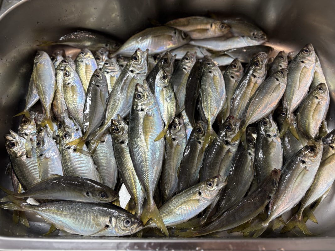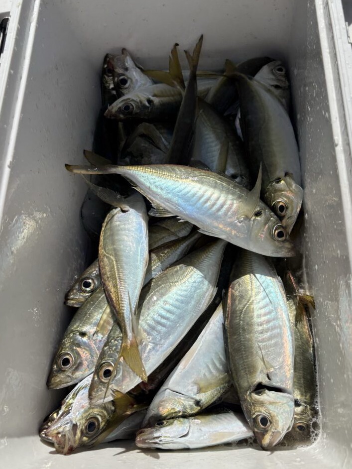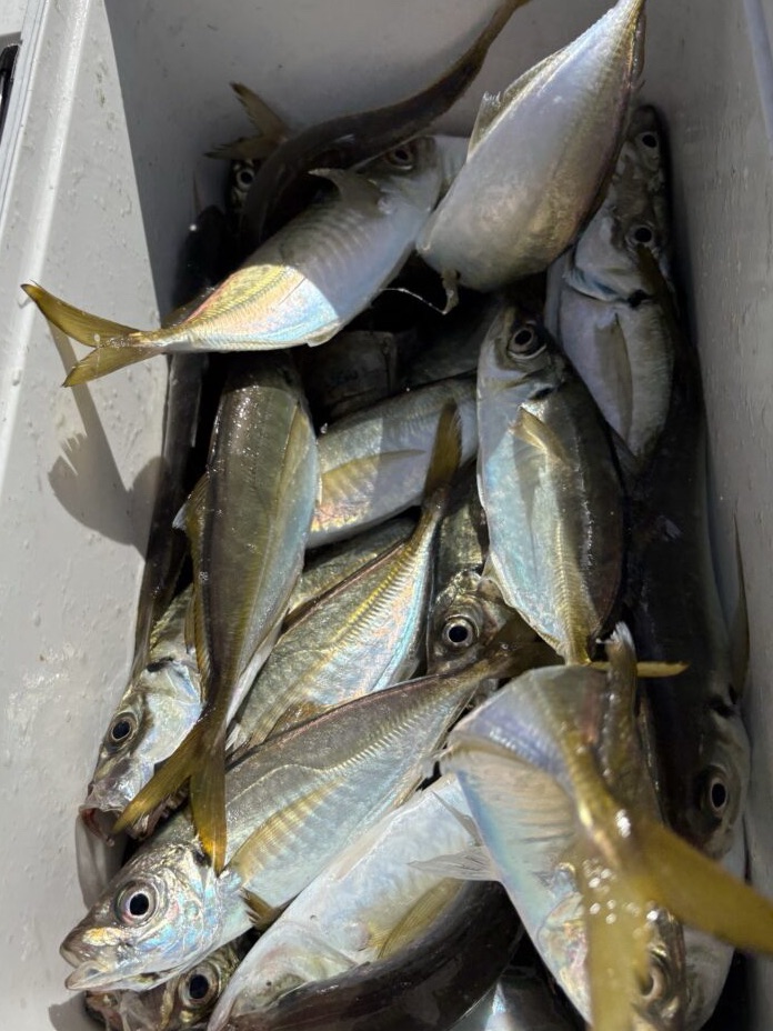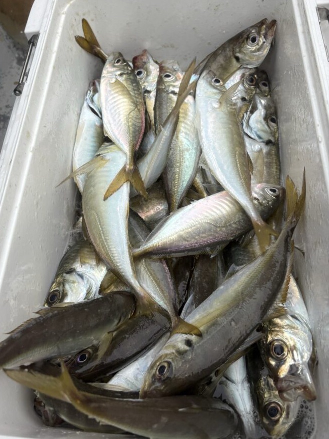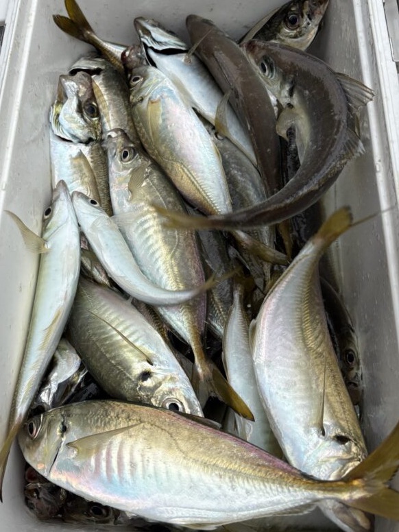 20センチ~25センチの中アジが釣れ始めた。魚影はかなり濃いと思われる。