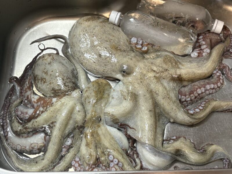 今日釣ったタコ🐙3ハイは1時間以内で釣れたよ。その後はアタリすらない。