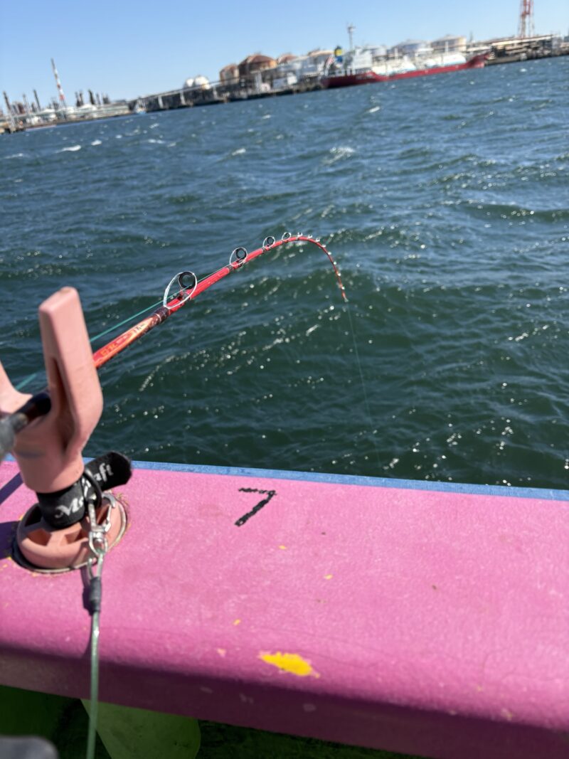 船中で誰かが釣ったらしい。中乗りさんから指示が『底から2mだよ』