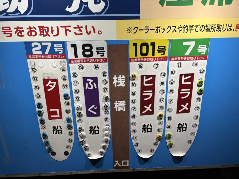 我々の釣座は18号船の⑯⑰に決定。Y氏が早めに到着して確保してくれた。(人”▽`)ありがとう☆